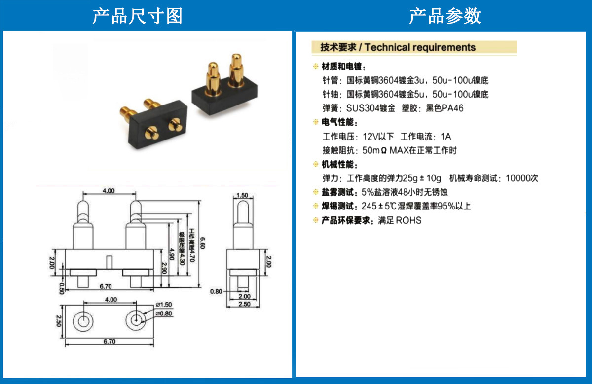 产品介绍:这个针通常用于智能手表,蓝牙耳机上的有充电的功能,但是探针总体来说还是测试的