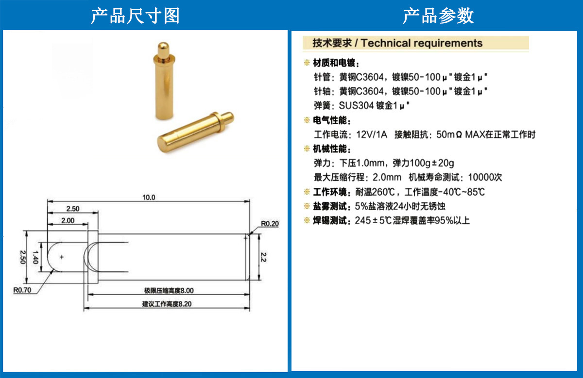产品介绍:这个针通常用于智能手表,蓝牙耳机上的有充电的功能,但是探针总体来说还是测试的