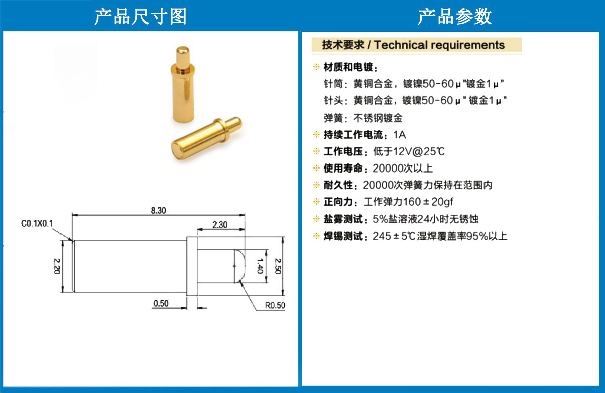 产品介绍:这个针通常用于智能手表,蓝牙耳机上的有充电的功能,但是探针总体来说还是测试的