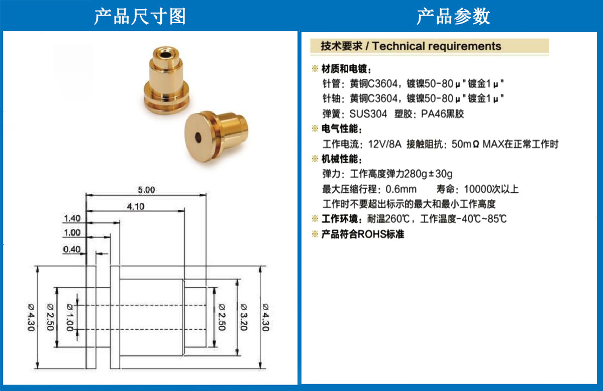 产品介绍:这个针通常用于智能手表,蓝牙耳机上的有充电的功能,但是探针总体来说还是测试的