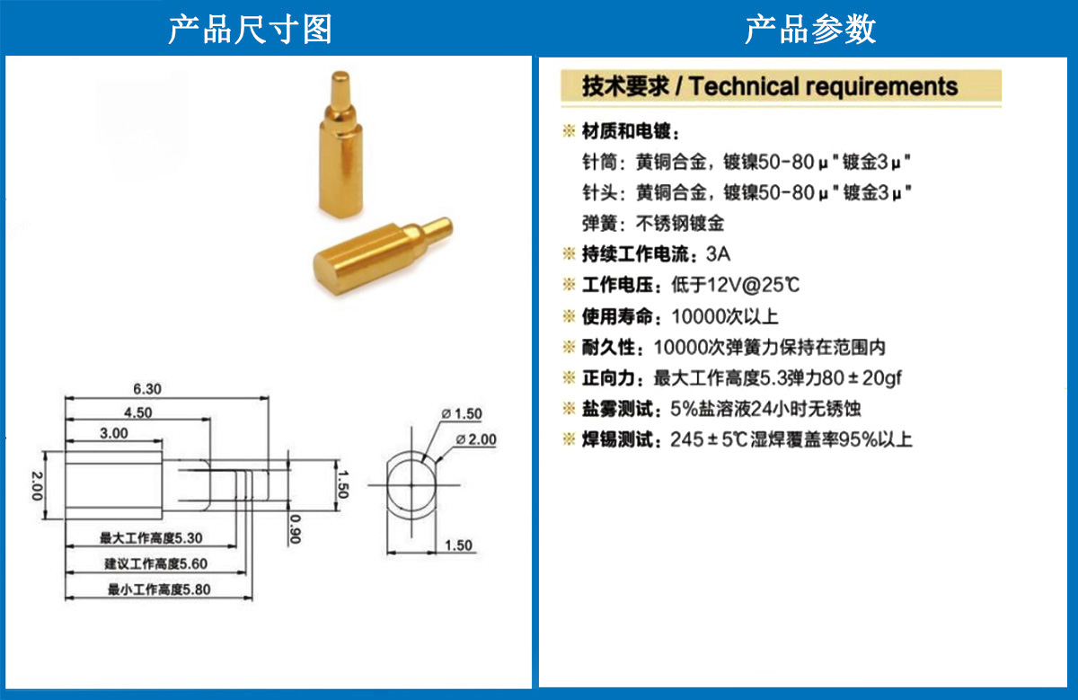 产品介绍:这个针通常用于智能手表,蓝牙耳机上的有充电的功能,但是探针总体来说还是测试的