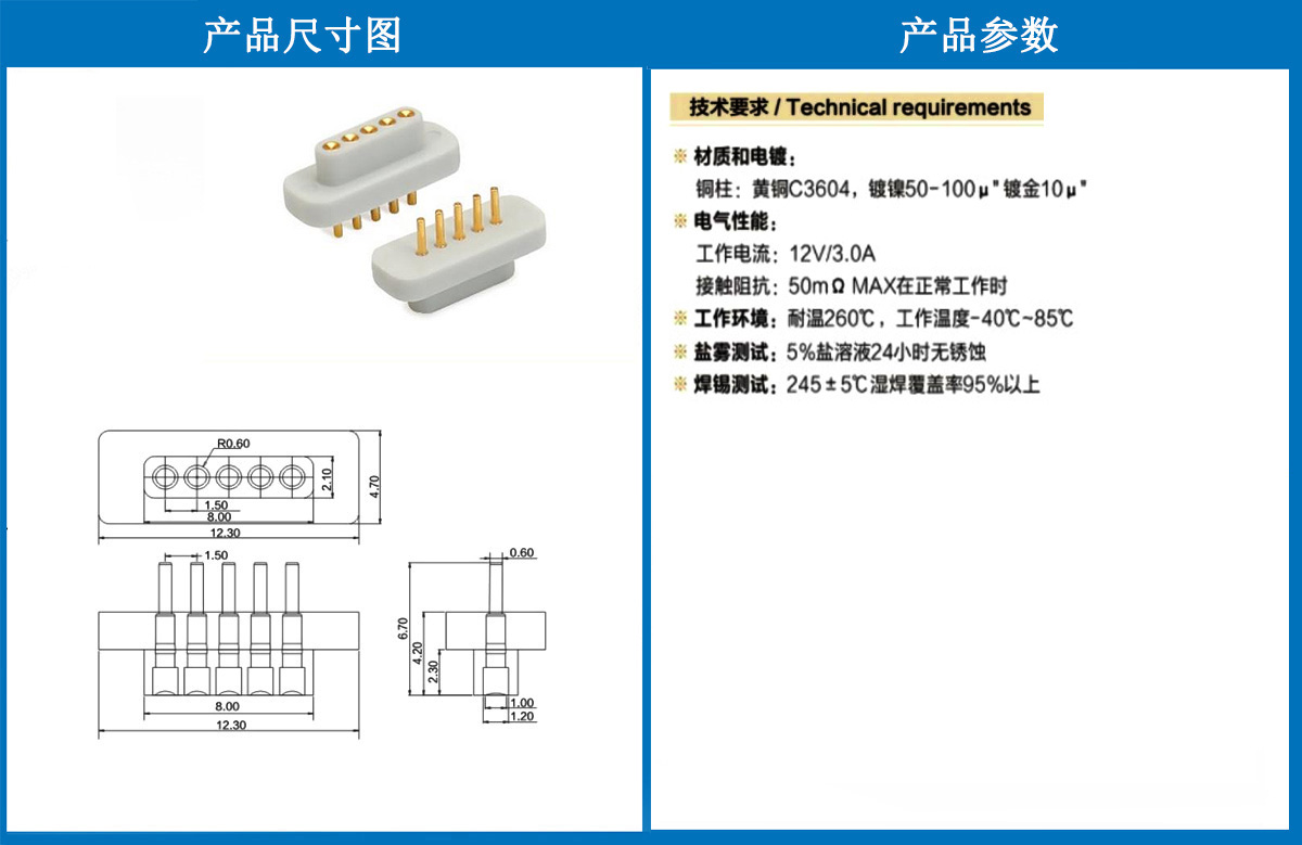 产品介绍:这个针通常用于智能手表,蓝牙耳机上的有充电的功能,但是探针总体来说还是测试的